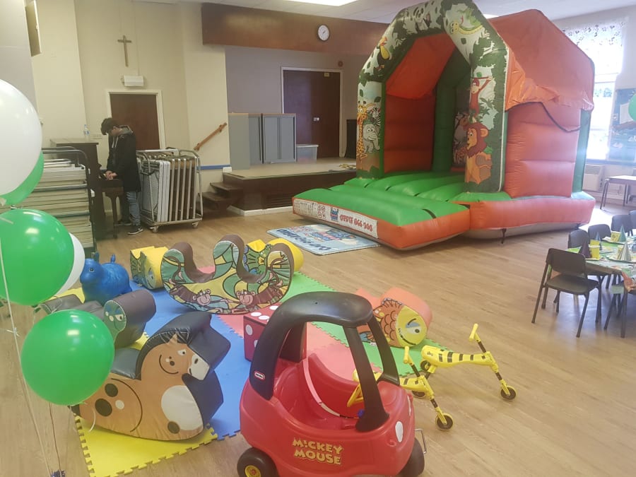 Jungle package comes with a vibrant 10ft high, 10 ft wide, 10ft long Jungle bouncy castle, paired with 10 soft play toys (ball pit not included).